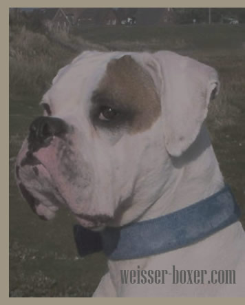 Diese Seite ist noch im Aufbau! Aber trotzdem schon mal: Hallo und Willkommen... ...auf meiner Homepage! Ihr findet hier einige Informationen über Boxer im Allgemeinen und vor allem über meinen weissen Boxer "Bruce".. "Bruce" ist nach 3 "normalen" mein erster weisser Boxer. Durch seine relativ ungewöhnliche Fellfarbe komme ich mit vielen Leuten ins Gespräch, die entweder gar nicht wissen, dass diese Rasse auch in weiß existiert oder mit den übliche Vorurteilen aufwarten. Einige sehen in ihm sogar einen sogenannten Kampfhund! Das hat mich veranlasst, weitere Informationen über diesen speziellen Typ Boxer zu sammeln und hier der Allgemeinheit zur Verfügung zu stellen. Gleichzeitig wage ich mit dieser Homepage meine ersten Gehversuche im WWW. Über ein Feedback, egal in welcher Form, wäre ich sehr erfreut. In diesem Sinne wünsche ich euch allen einen guten Start ins Jahr 2007. Liebe Grüße, Sandra |